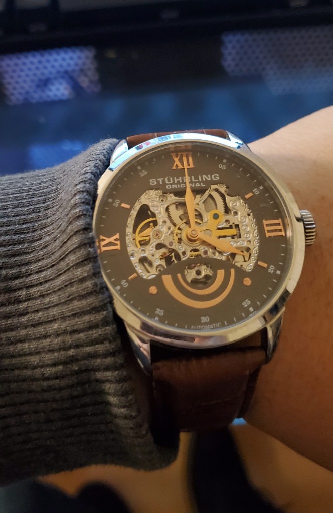 Tradition always takes place at 4:00 AM, it’s a saying from some college buddies back in the day. This watch’s second hand broke off leaving the gears forever frozen in tradition.