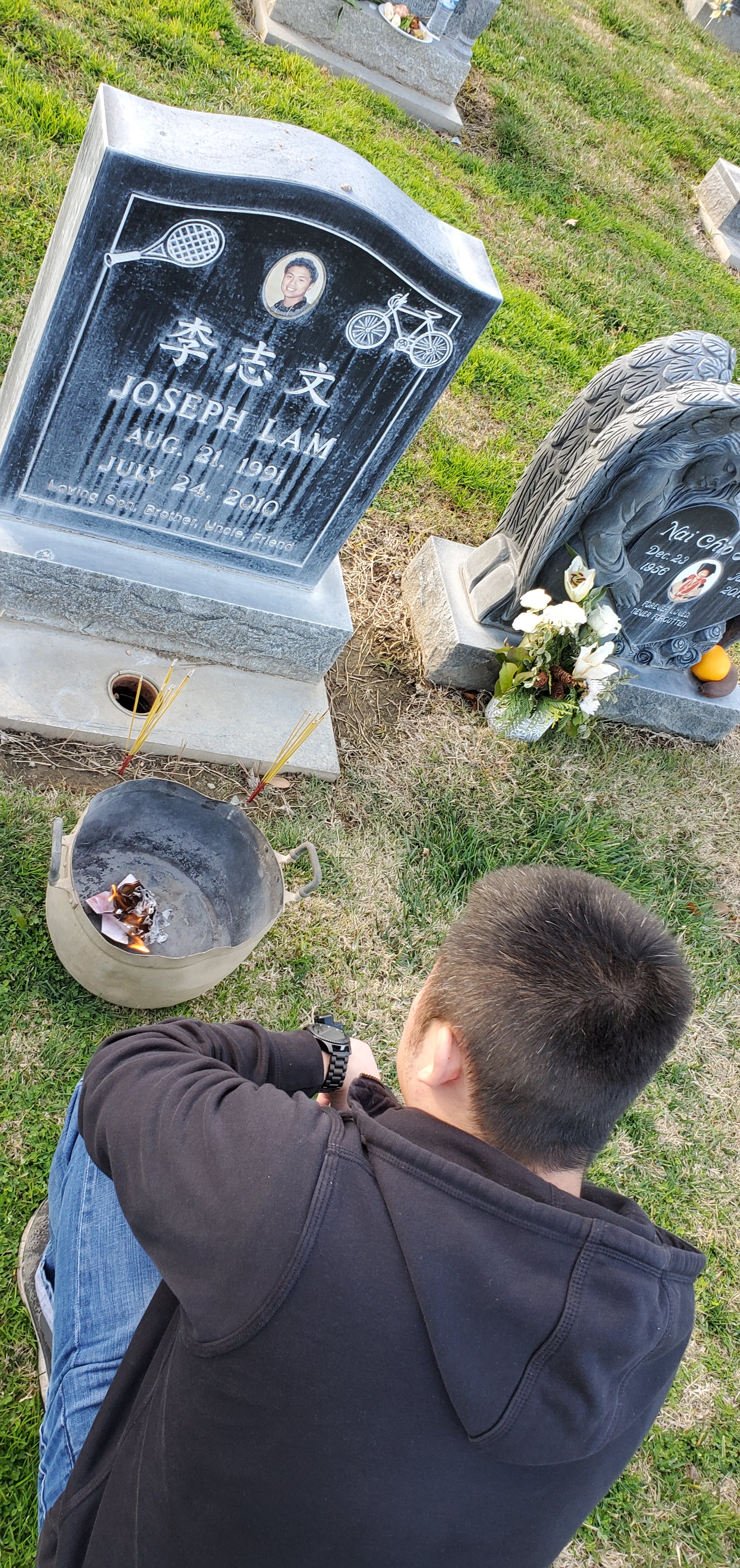 I decided to make this yearly tradition a little more special by bringing some friends for the first time in my life. I am almost always alone when I show up to burn some money and light up some incense or leave some flowers and food but I wanted to be a little more hopeful this year. To symbolize my new found hope, I did something outside my comfort zone and brought some people to honor their memory and spirit as well. Although I am not a religious person, I am very spiritual and by burning some origami flowers and some folded golden ingots, it is as if though I am lighting the fires of their memories ablaze in my life again.